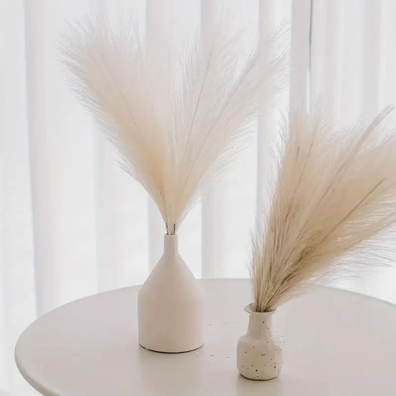 Forvandl dit hjem til en stilfuld oase af velvære med BohoFlairs pampasgræs-sæt! Disse 20 pampasgrene i stof af høj kvalitet giver dit hjem et naturligt og elegant præg - perfekt til stuen, bryllupper, festlige lejligheder eller som et stilfuldt indslag på spisebordet.
