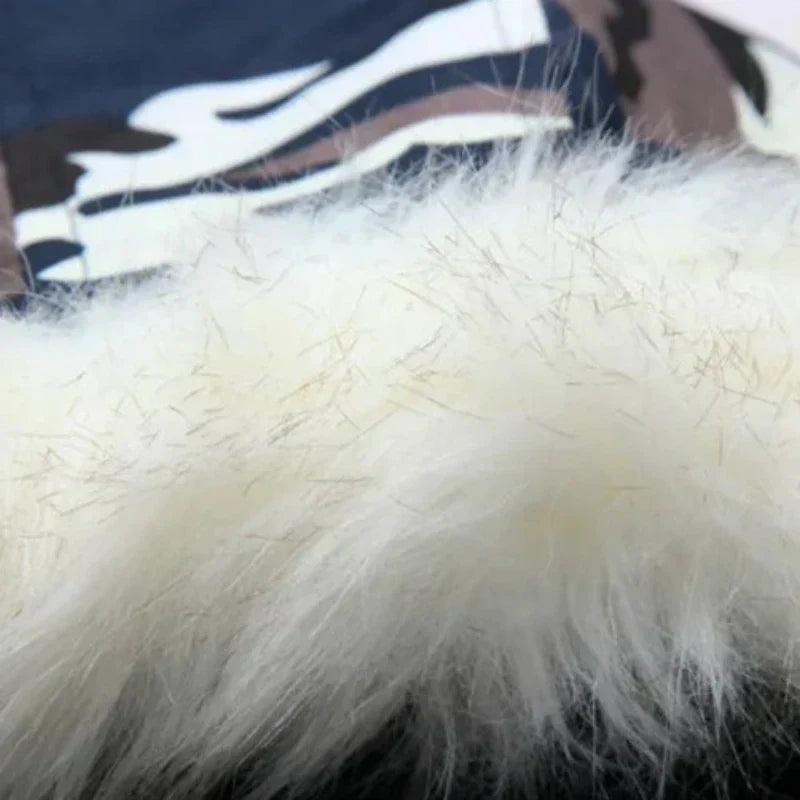 Jakken imponerer med sit unikke camouflagemønster, som ikke kun ser robust ud, men også er perfekt til udendørs aktiviteter eller hverdagsbrug.
