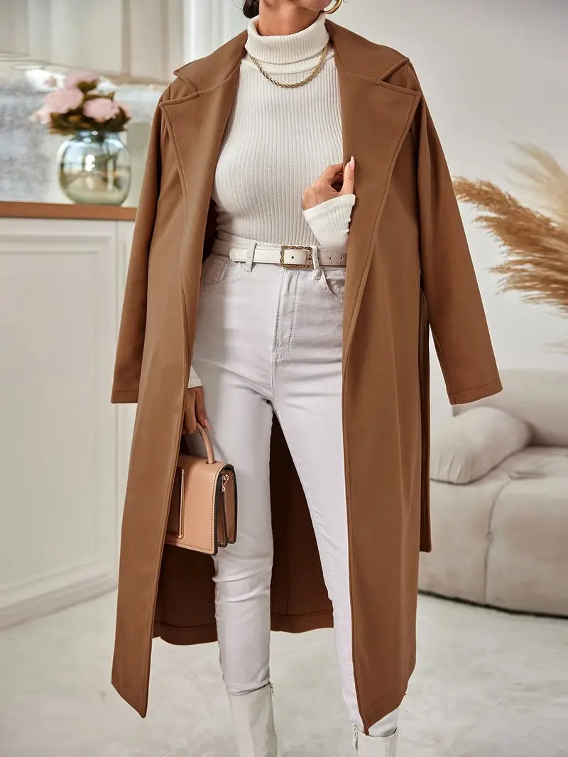 Med sin åbne front og klassiske reverskrave er denne frakke ikke kun funktionel, men også et modestatement. Det tidløse design gør den til et must-have i enhver garderobe, ideel til overgangen fra forår til efterår.