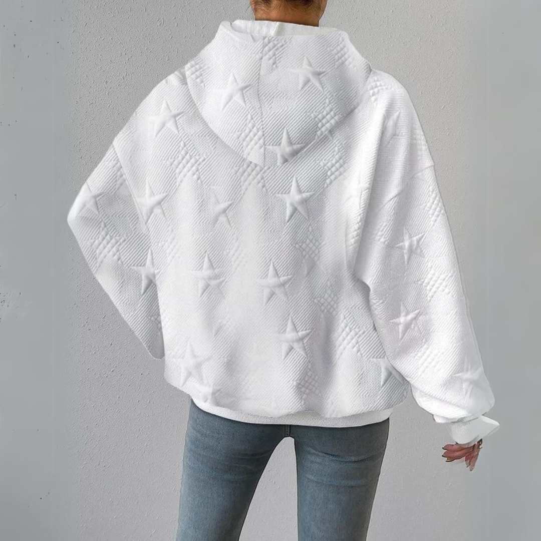 Det iøjnefaldende stjernemønster giver hættetrøjen et særligt stilfuldt touch. Et ægte blikfang, der giver dit outfit det lille ekstra uden at gå på kompromis med komforten.