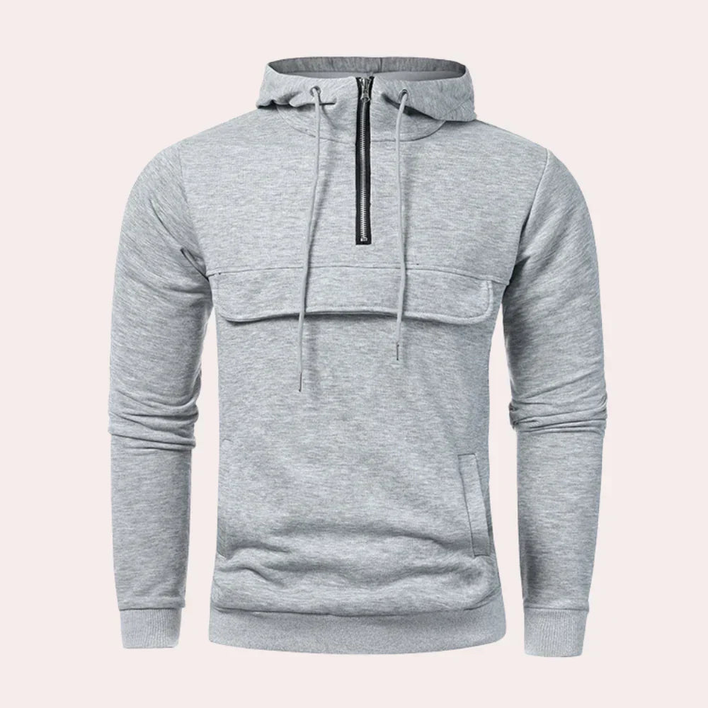 Eliasen half-zip hoodie er det ideelle valg til den moderne mand, der prioriterer komfort og stil. Denne hættetrøje kombinerer den praktiske halv lynlås med et afslappet design og er fremstillet af bløde materialer, der sikrer en behagelig pasform. Perfekt til hverdagsbrug, uanset om du slapper af eller mødes med vennerne - Eliasen-hættetrøjen bringer stil og komfort til hver dag.
