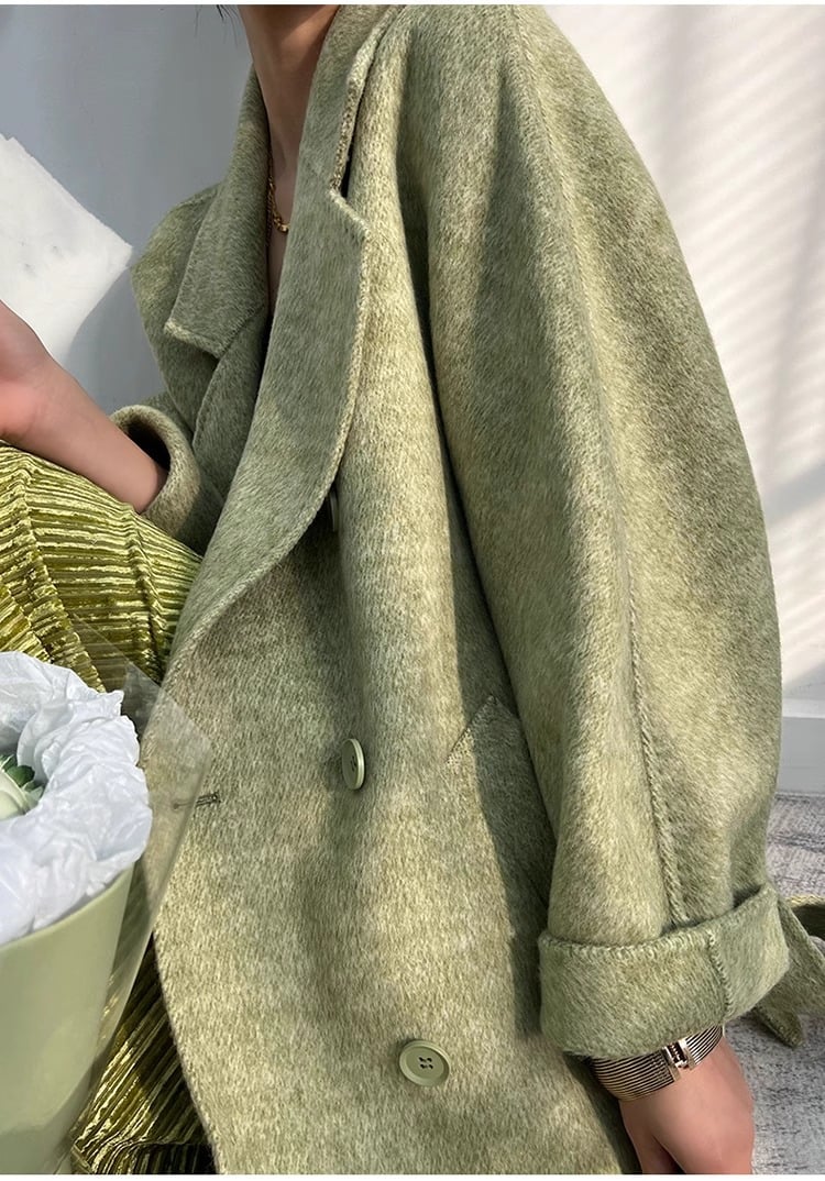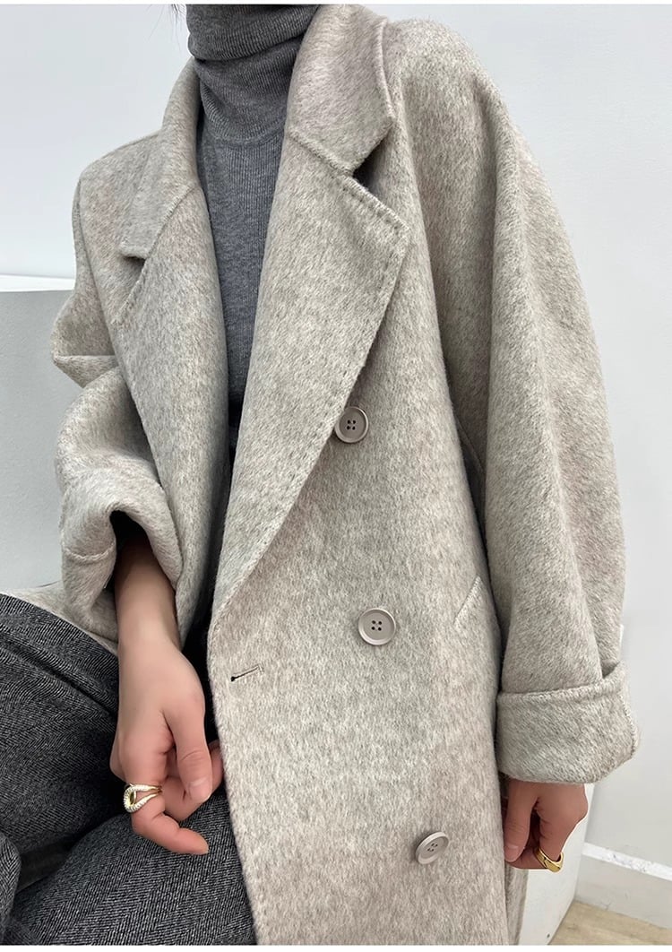 Denne frakke er fremstillet af dobbeltvægget uldmateriale af høj kvalitet og giver fremragende varmeisolering og en blød, behagelig fornemmelse - den perfekte ledsager til kølige dage.