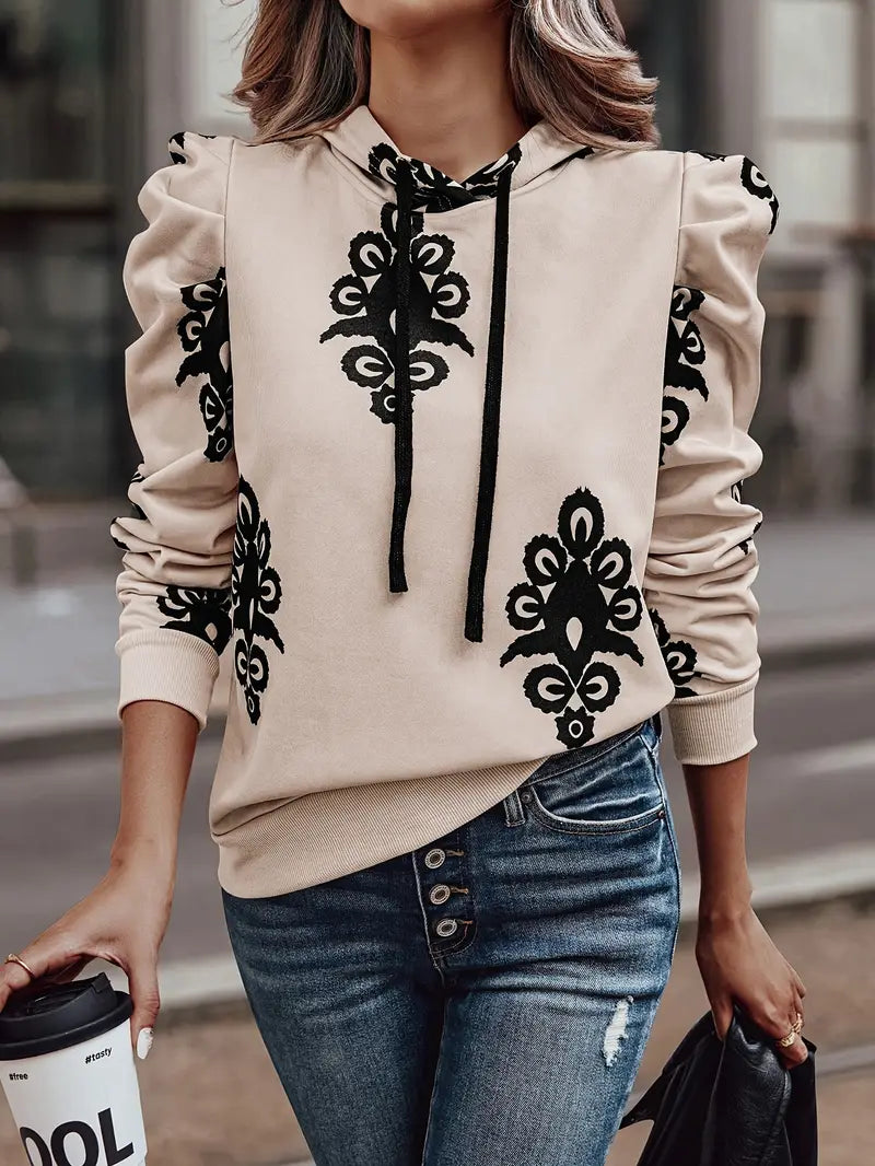 Faelyn Geometric Hooded Jumper til kvinder kombinerer moderne stil med ultimativ komfort. Trøjen er fremstillet af blødt bomuldsstof og har en behagelig, afslappet pasform, som er ideel til hverdagsbrug. Det iøjnefaldende geometriske print giver et kunstnerisk touch, mens den justerbare hætte og de ribbede manchetter sikrer en individuel pasform. Med en varm inderforing er denne trøje også perfekt til køligere dage - en rigtig allrounder til ethvert outfit.