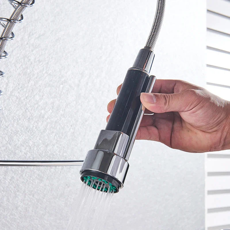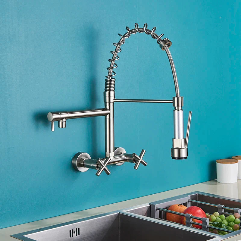 Leder du efter en vægmonteret køkkenarmatur med pull-down-skyllefunktion, som man ser i restaurationsbranchen? Så er denne skyllearmatur med udtrækkelig håndbruser fra Favn det perfekte valg for dig. Med sit rene, moderne design passer denne smukke køkkenarmatur til ethvert køkken. Derudover er vandhanen også meget praktisk takket være den aftagelige håndbruser og den separate normale vandhane. Det holdbare keramiske indre sikrer en smidig og langvarig brug. Leveres med tilslutningsslanger.