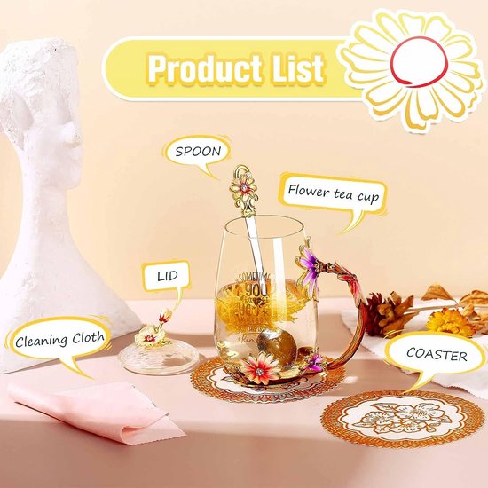Giv dine varme drikke endnu mere mening med FloralGlaubes krystalglas-krus. Med smukke 3D-designs af sommerfugle og margueritter er dette krus mere end bare et praktisk redskab - det er et udtryk for kærlighed og støtte. Ideel som gave til din kone, mor, søster, kæreste, bedstemor eller kollega!