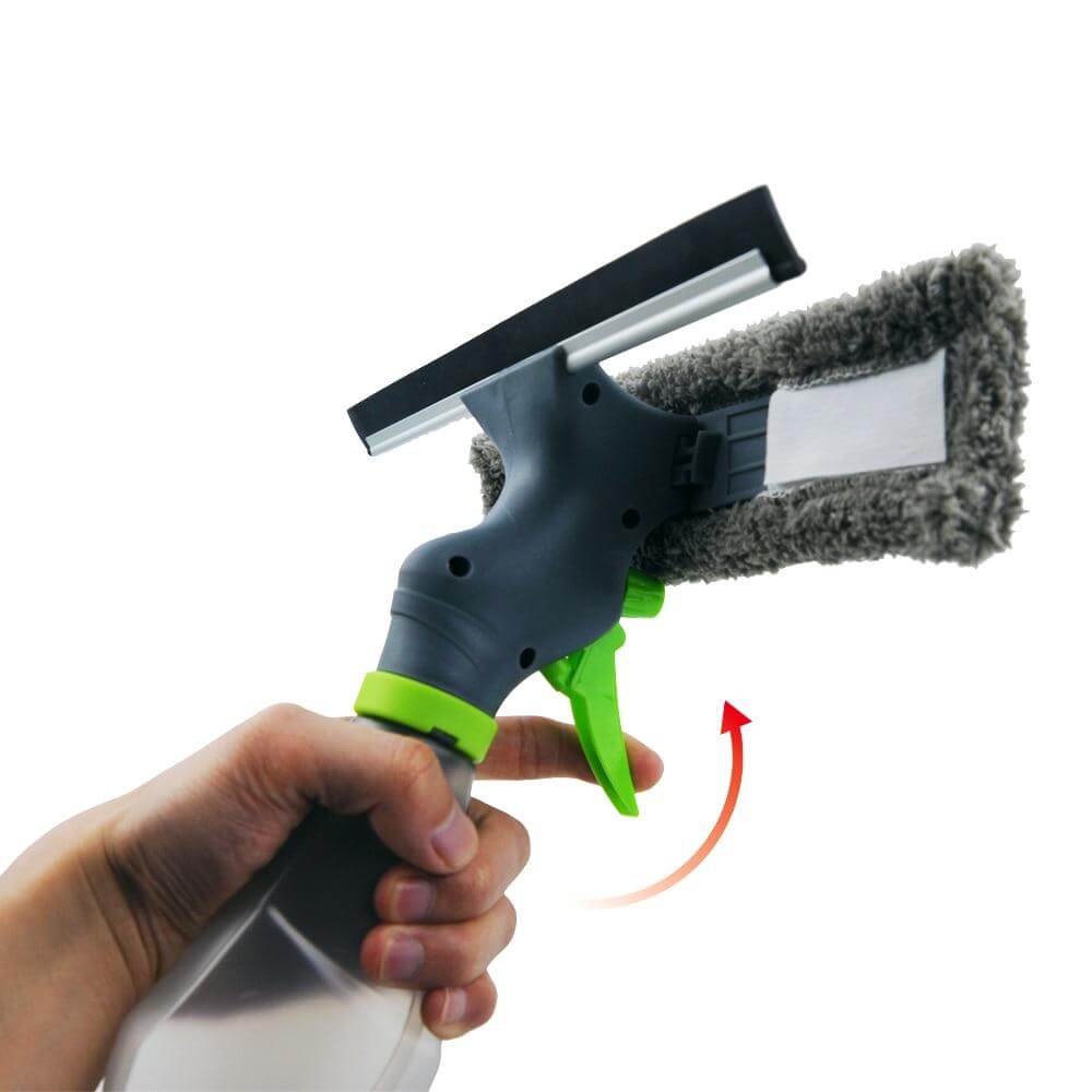Takket være den integrerede sprayflaske, den absorberende mikrofiberpude og den fleksible gummiskraber kan du opnå perfekt rengøring i bare ét trin!