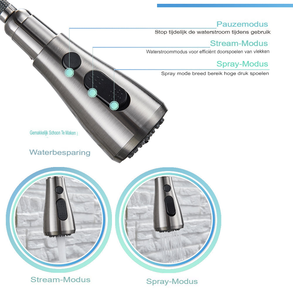 Det udtrækkelige sprøjtehoved giver ultimativ bekvemmelighed, når du vasker op og rengør din vask. Uanset om du hurtigt vil rengøre din vask eller blot skylle en skål, giver denne vandhane dig altid perfekt kontrol over vandet.