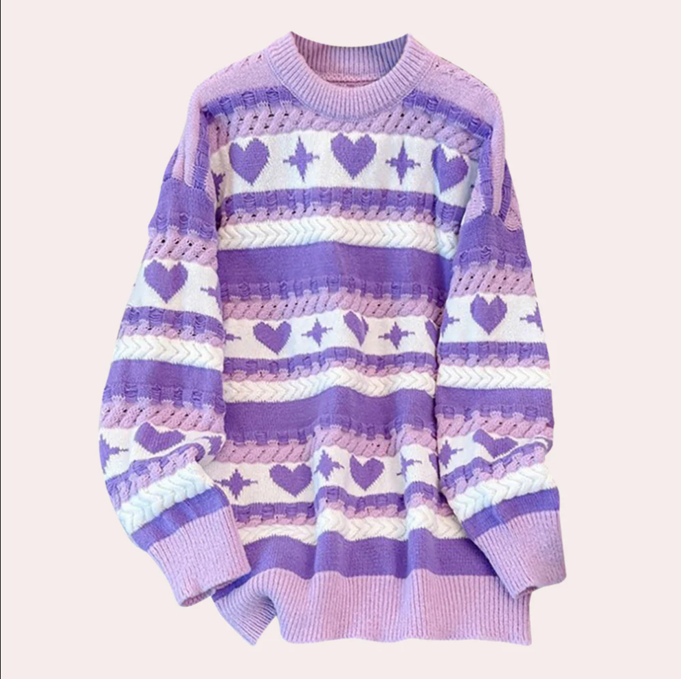Med sine moderigtige hjerte- og stjernemotiver følger Jemma-trøjen de nyeste trends og tilføjer et legende, men stilfuldt touch til ethvert outfit. Den kan kombineres perfekt med andre beklædningsgenstande og gør ethvert outfit til noget særligt.