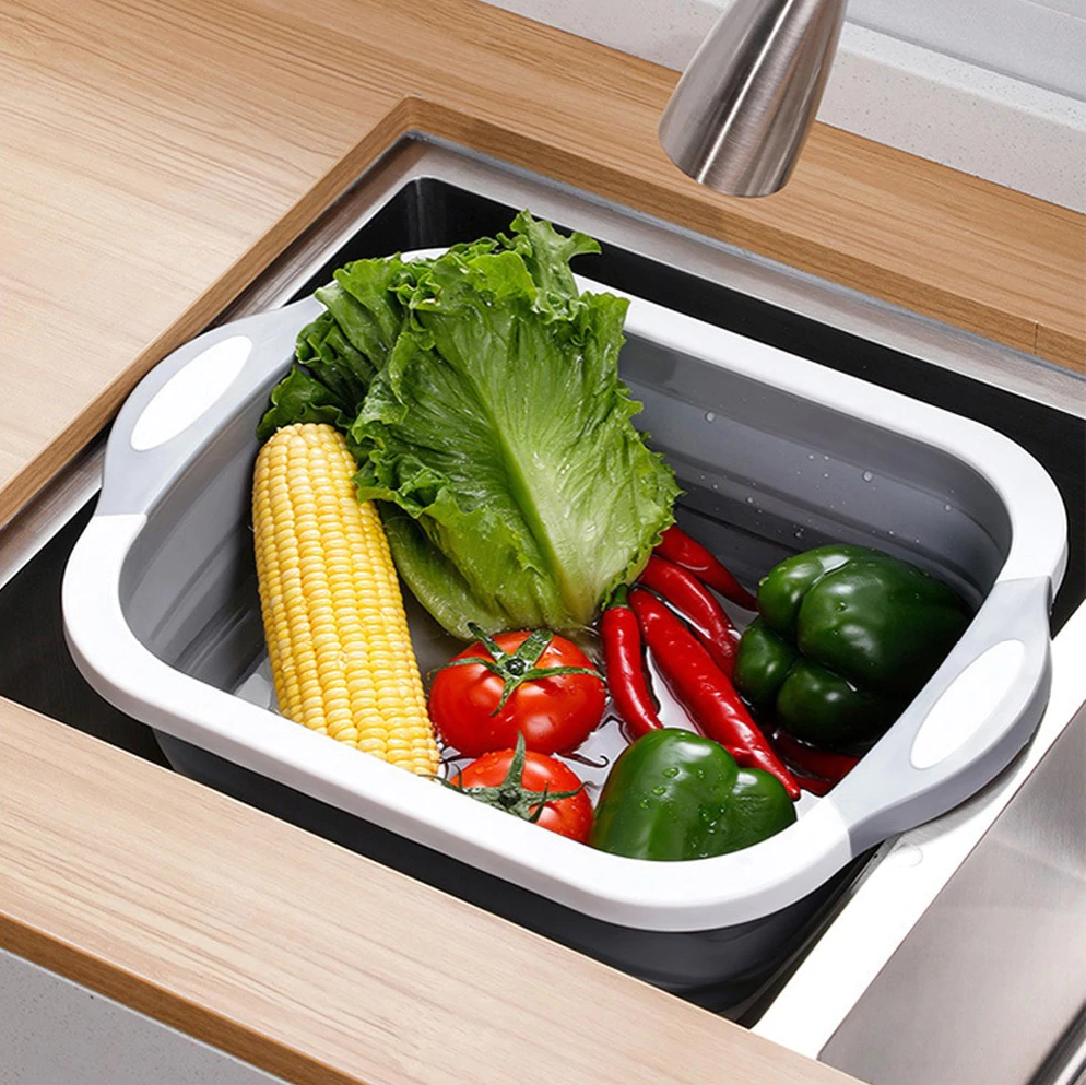 Gør din køkkenforberedelse nemmere og hurtigere med KitchenPro 3-i-1-skærebrætkurven! Dette innovative multifunktionelle værktøj kombinerer et skærebræt og en kurv i en enkelt praktisk enhed. Uanset om du er professionel kok, amatørkok eller kokkeelev, sparer dette produkt ikke kun plads, men maksimerer også din køkkeneffektivitet.