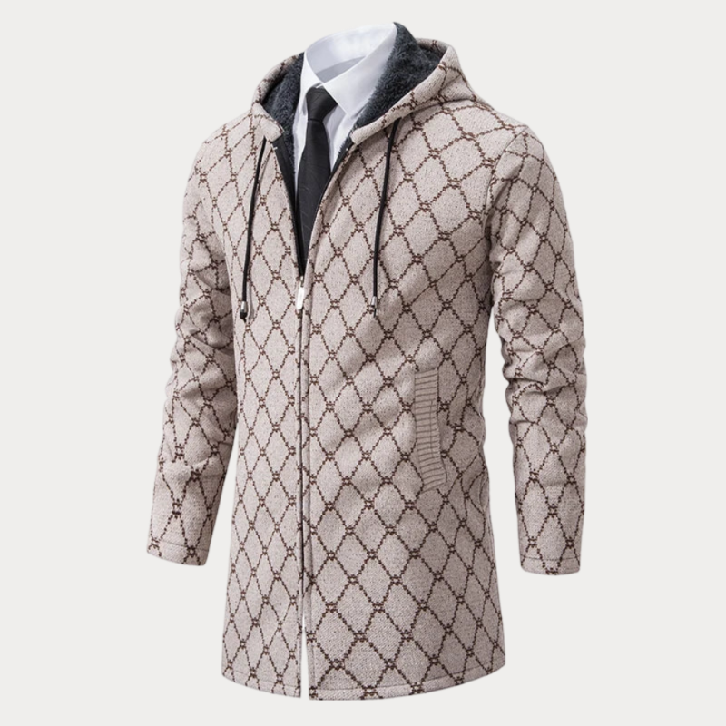 Med en praktisk hætte, der giver ekstra varme og vindbeskyttelse, er denne frakke den ideelle ledsager til omskifteligt vejr og sikrer en hyggelig oplevelse hele dagen.