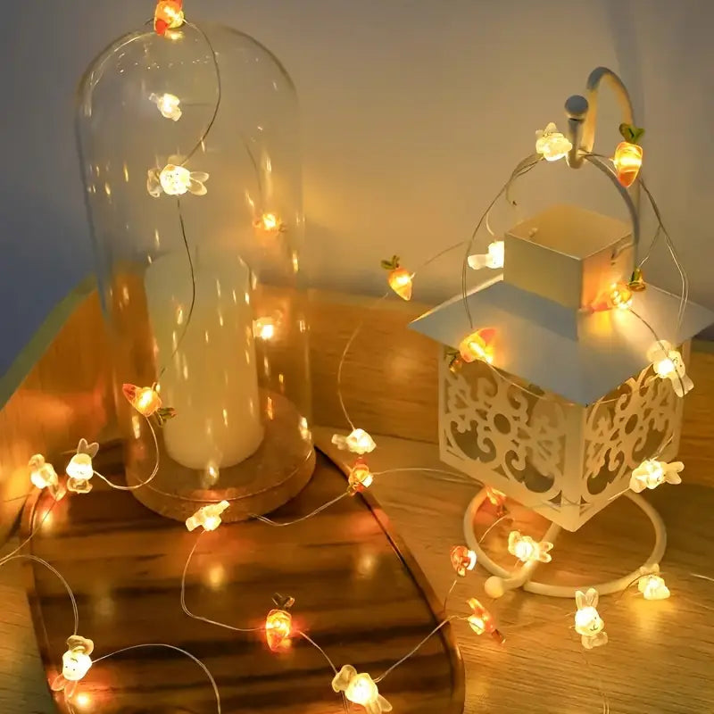 Forvandl dit hjem til et lysende påskeparadis med LumiFest LED-påskelys-kæden! De søde kanin- og gulerodsmotiver skaber en legende og festlig atmosfære, perfekt til dine påskedekorationer. Uanset om det er i stuen, soveværelset eller haven - denne batteridrevne lyskæde kan nemt installeres overalt.