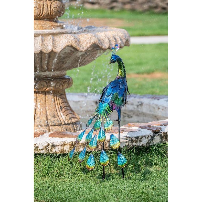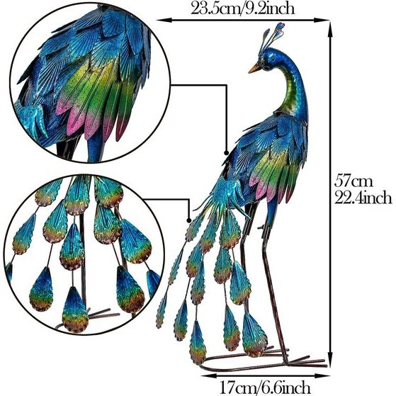 Med sin detaljerede finish og elegante udseende vil påfuglen være et stilfuldt indslag i din have. Den giver en rolig, men vittig aura og er en fantastisk tilføjelse til dit havedesign eller indgangsparti.