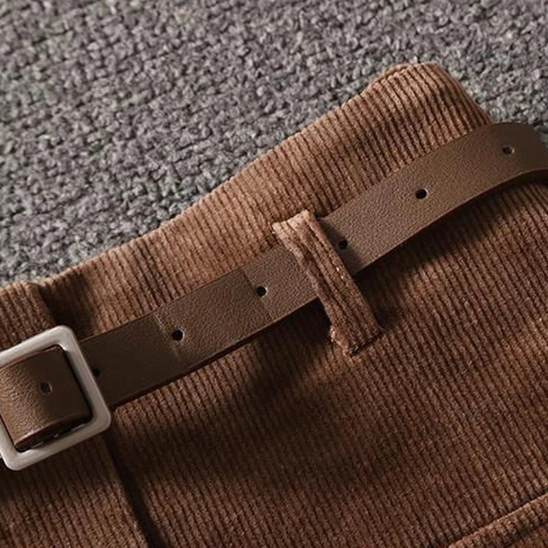 Nederdelen er lavet af blødt og slidstærkt fløjl, som giver både komfort og holdbarhed. Det føles behageligt mod huden og er robust nok til hverdagsbrug.