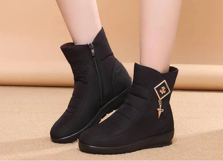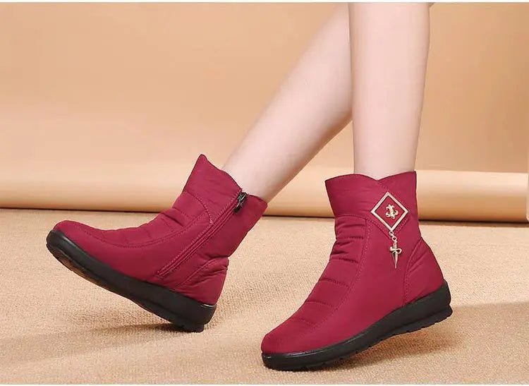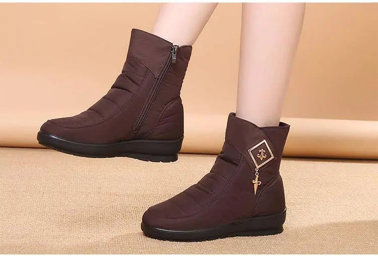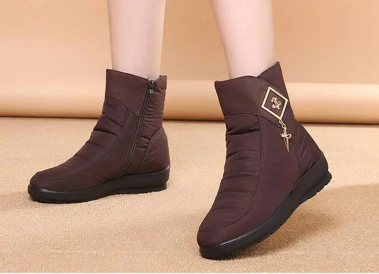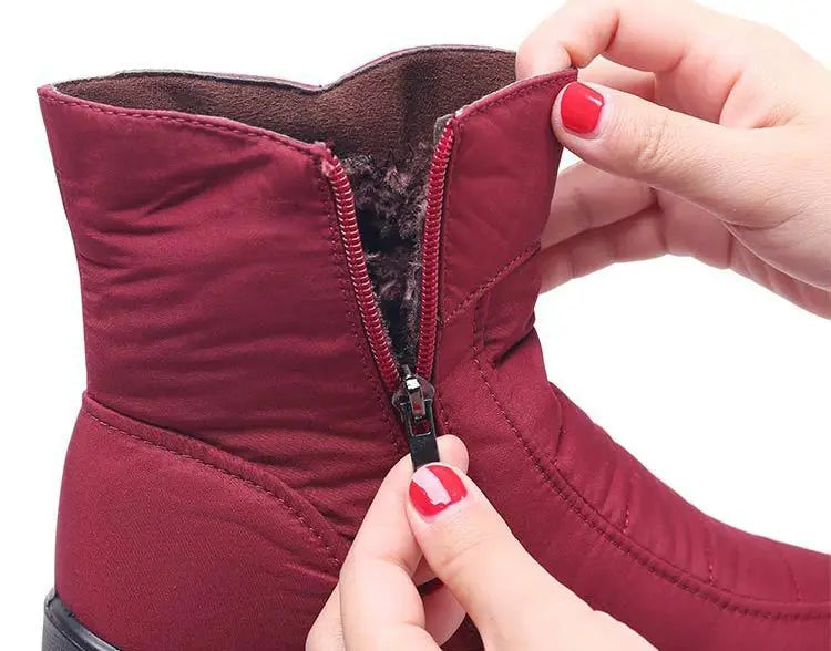 Brianna-snestøvlerne er lavet af vandtæt nylon Oxford-stof og en gummisål af høj kvalitet for at give dig ekstra beskyttelse. Der kommer ikke regn, sne eller andre væsker ind - så dine fødder forbliver tørre og komfortable hele dagen.