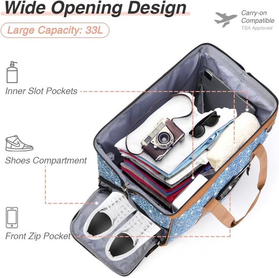Med en volumen på 33L (42 x 33 x 24 cm) er denne rejsetaske perfekt til 2-3 dages ture. Brug den som weekendtaske, sportstaske eller håndbagage - altid plads nok til dine vigtigste ting!