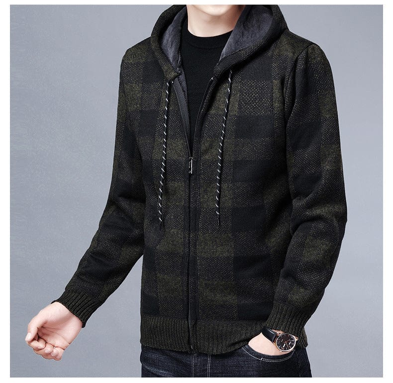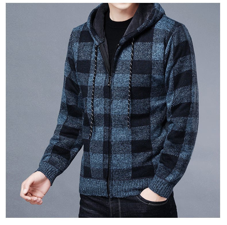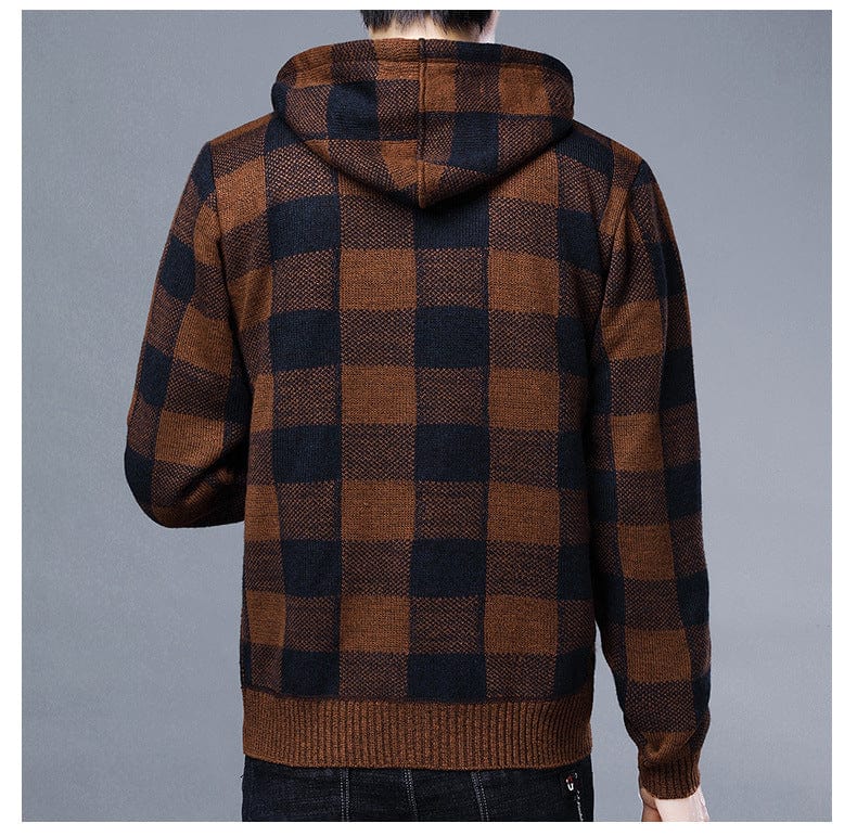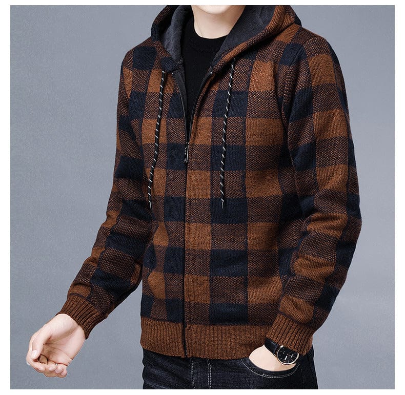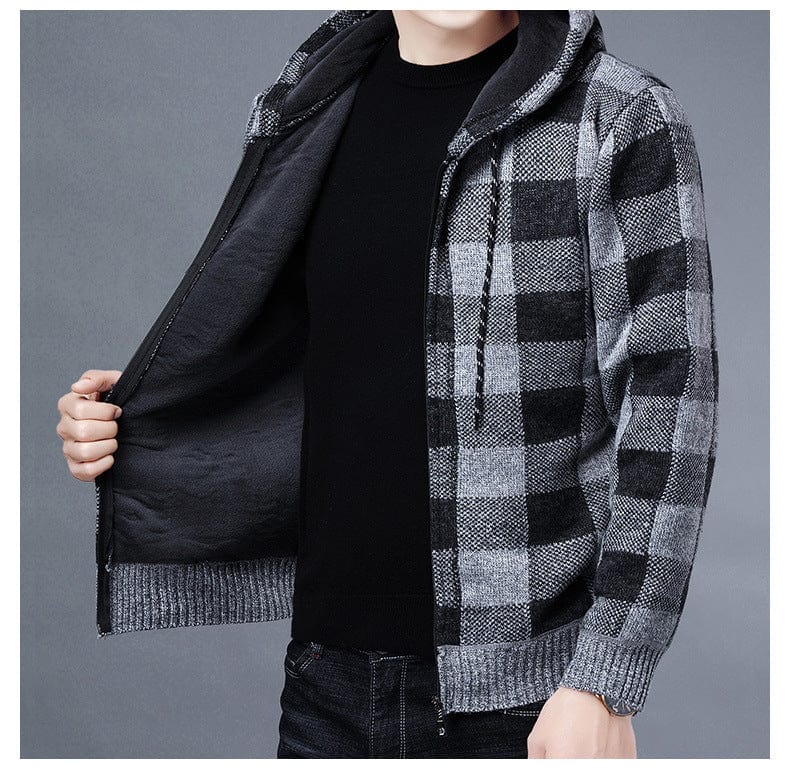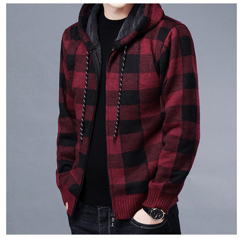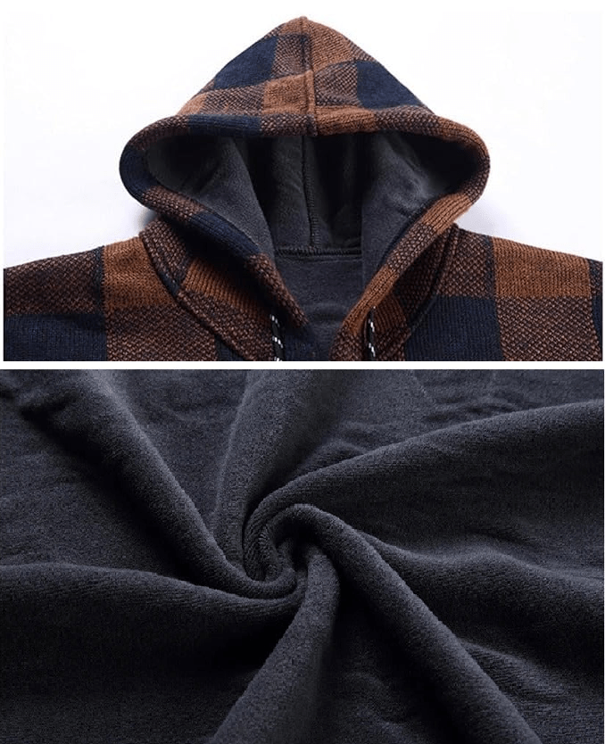 Hættetrøjen skiller sig ud med sit kontrastfyldte ternede mønster og moderne stand-up-krave, som giver looket et maskulint touch. Den perfekte stilfulde tilføjelse til ethvert outfit!
