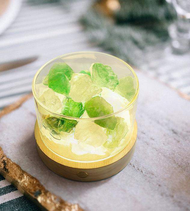 Diffusoren er lavet af ægte krystalsten, som ikke kun forbedrer æstetikken i dine rum, men også kombinerer funktionalitet som diffusor med luksuriøst design.